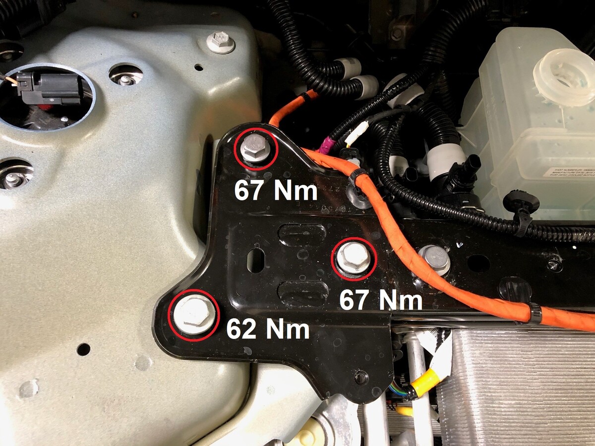 | Bolts that attach the LH and RH sides of the shock tower brace | See image in procedure for proper torque specifications |