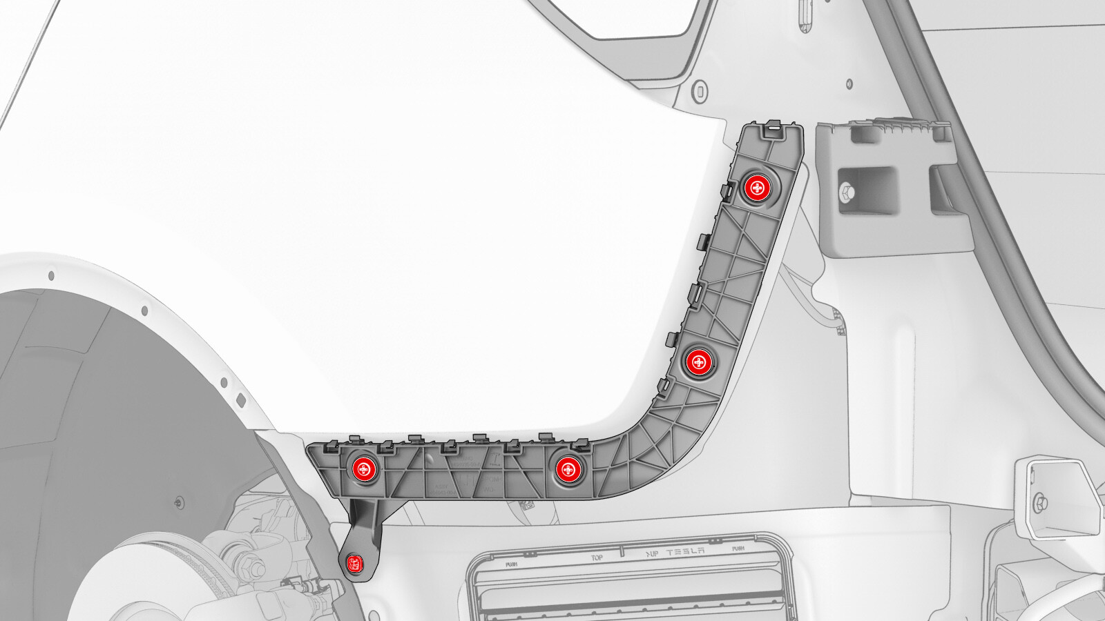 - 拆下将 LH 后翼支架固定到车辆的夹子。