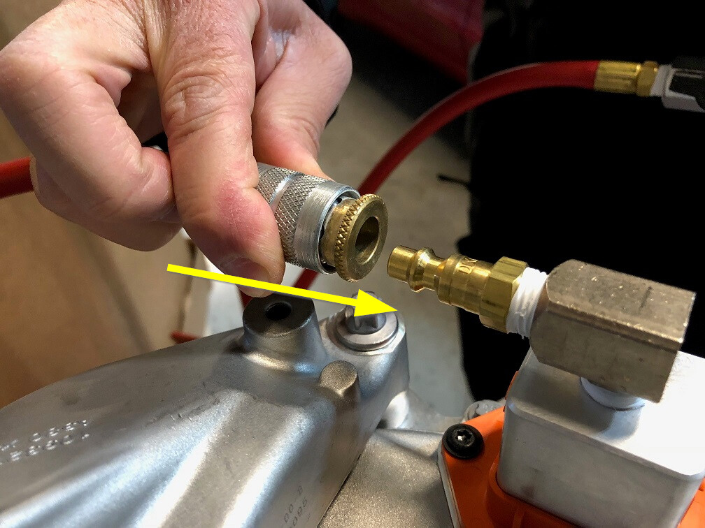 - 关闭电池组外壳泄漏测试仪上的两处阀门,然后连接一根压缩空气供应管。