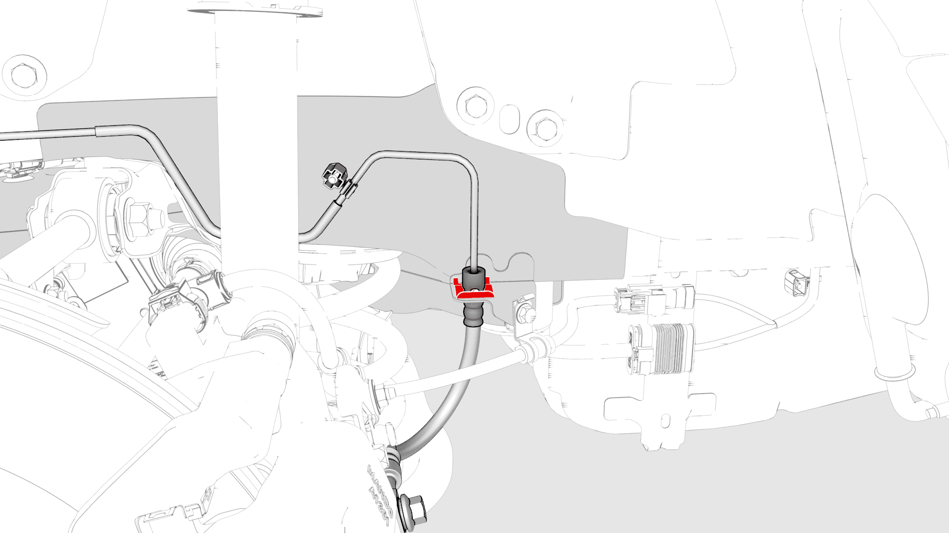- 松开连接制动软管和震动软管支架的夹子,然后从支架上取下软管。
