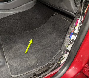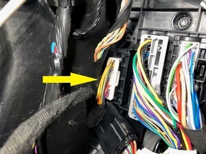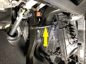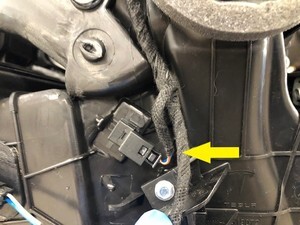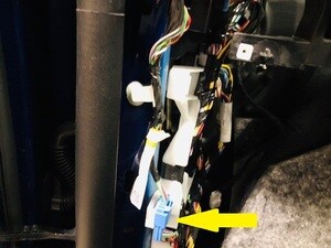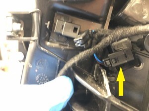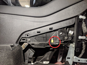 从左侧脚部空间盖板上拆下连接器,然后将其从车辆上拆下