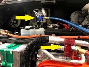 开启空调;温度设置为“低”;开启“面板”模式;开启“新鲜空气”模式;鼓风机转速设置为 3;将机器阀门转为“开”;稳定压力,从车辆上拆下下方软管;继续按空调机指南操作,清理空调软管