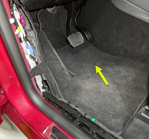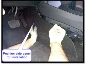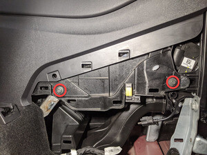 安装用于固定左侧脚部空间盖板的螺钉和卡子