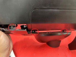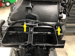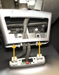 11 个夹子,2 个导销;使用饰板工具从顶部边缘开始松开上部夹子,然后拉动底部以便松开其余夹子;小心将面板径直拉出控制台,如若面板脱落,可能会损坏