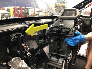 将下方空调软管安装到空调歧管至 HVAC 总成