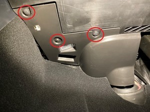 拆卸用于固定左侧脚部空间盖板的螺钉和卡子