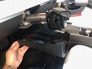 建议寻求他人协助;向下倾斜中控台前部,将总成滑向车辆前部,将中控台后部倾斜入位