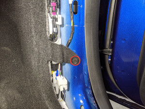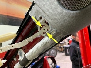 1 个夹子,2 个导片;对齐 2 个前部锁片,然后将卡槽对齐线束支架,接着推动后端夹子,以便固定 B 柱下部