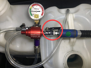 - 将车间用供气装置从冷却液重新加注工具上断开