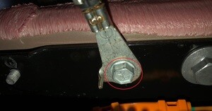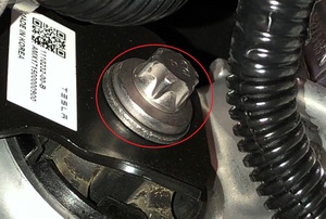 拆下将高压电池仓探针盖固定到高压电池仓盖板的螺栓。