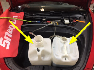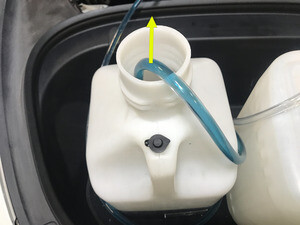 - 将空的冷却液容器放入前部储物区域