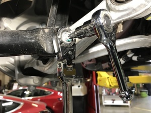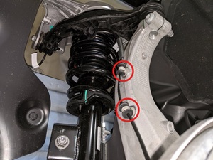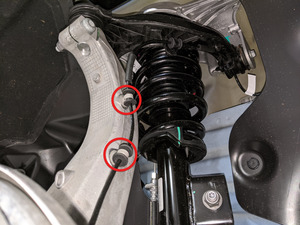 紧固将左侧支柱固定到下控制臂的螺栓和螺母