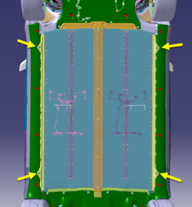 注14 个卡子;固定前备箱后围,防止其在接合前部卡子时弯曲