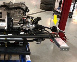 注前轮毂应该仍可以自由转动,以便对齐中间轴;将举升机升离锁止位,然后固定住释放杆,使锁具在降下车辆时保持活动自如