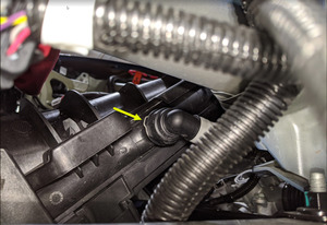 - 将冷却液重新加注软管从冷却液容器上拆下