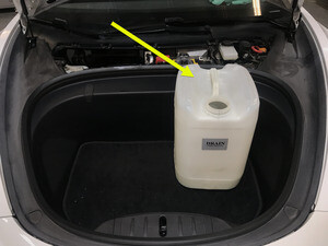 - 将注满冷却液的容器放入前部储物区域