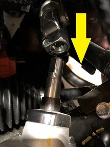 注确保中间轴对齐并且完全就位;建议视需要寻求他人协助,将轴与转向机对齐