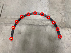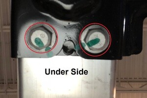 在前流线型护板螺栓上涂抹 Loctite 222,然后将外侧紧固件安装到前流线型护板上