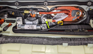 注Use inflatable air bag to suspend busbar away from HV header during removal and installation