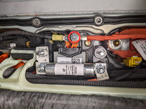 注Make sure to wear PPE (HV gloves, safety glasses) when working on high voltage component, Measure B+ to Ground, B- to Ground, B+ to B-, If voltage is greater than 10V, Pack contactors are not open or welded, Stop work and reach out to Service Engineering