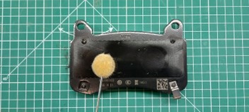 3. 将 NVH 预切割贴纸与前制动片(4 个)背面对齐,然后按压贴纸,使其紧贴在制动片上。