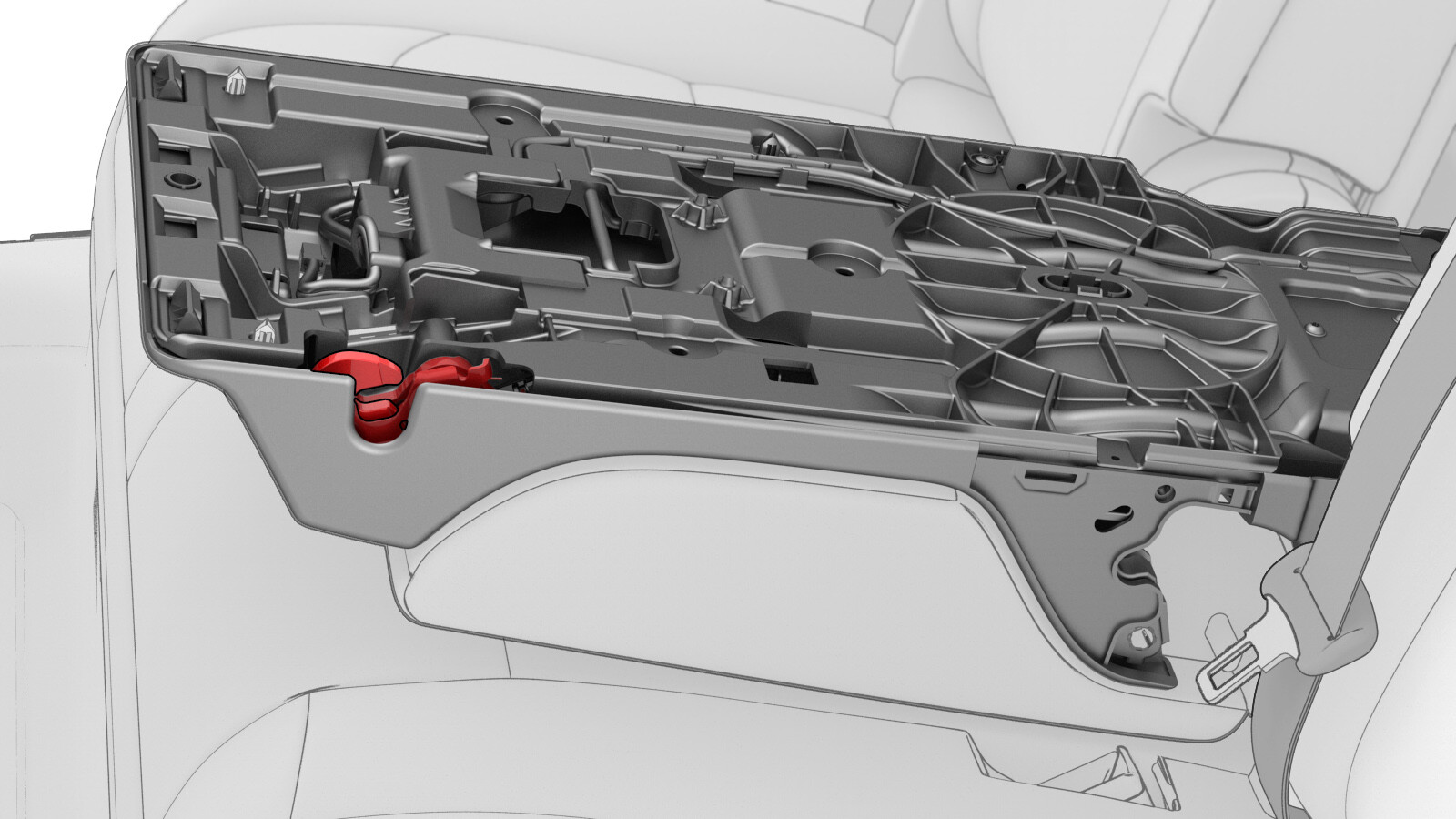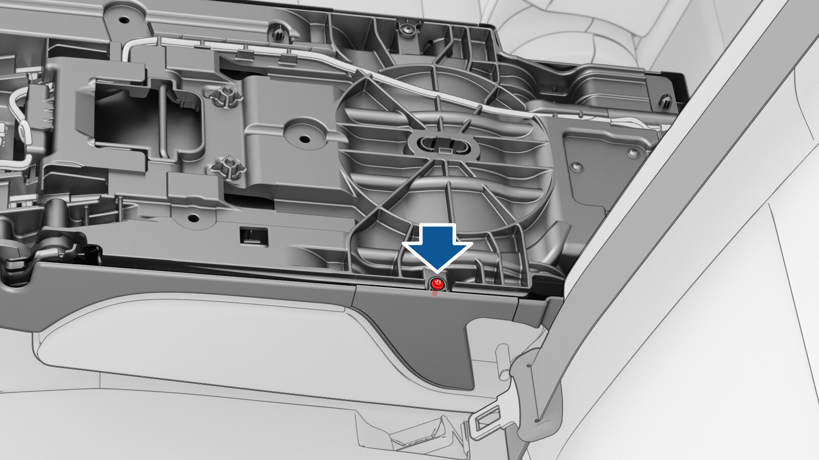 - 将第二排扶手从第二排中间座椅靠背拉开。