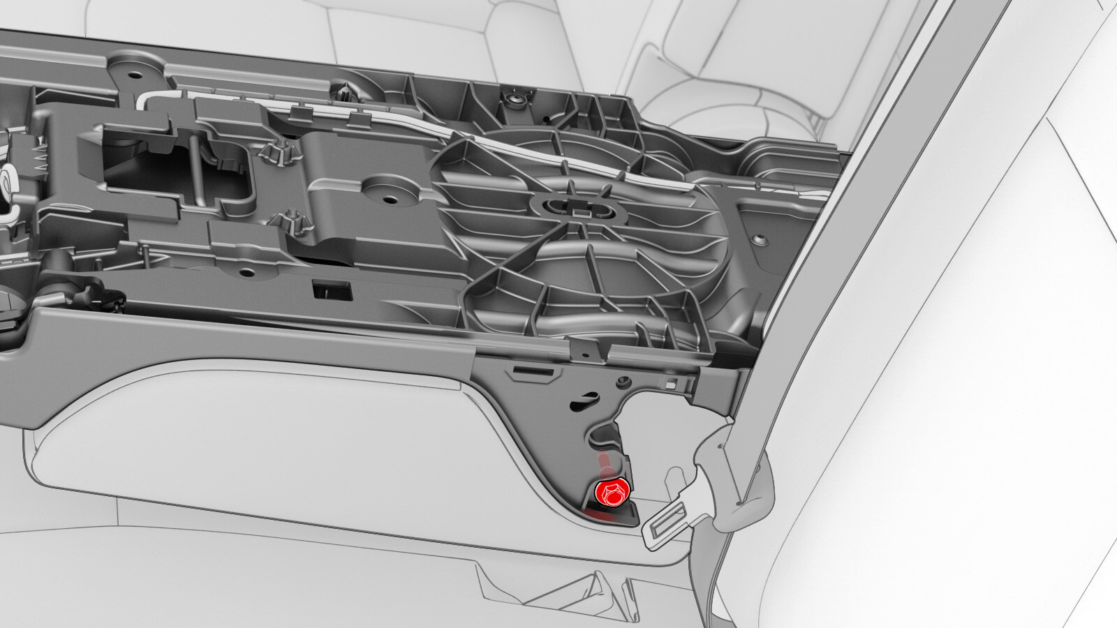 | 将左侧扶手盖板固定到第二排中间座椅框架的螺钉 |