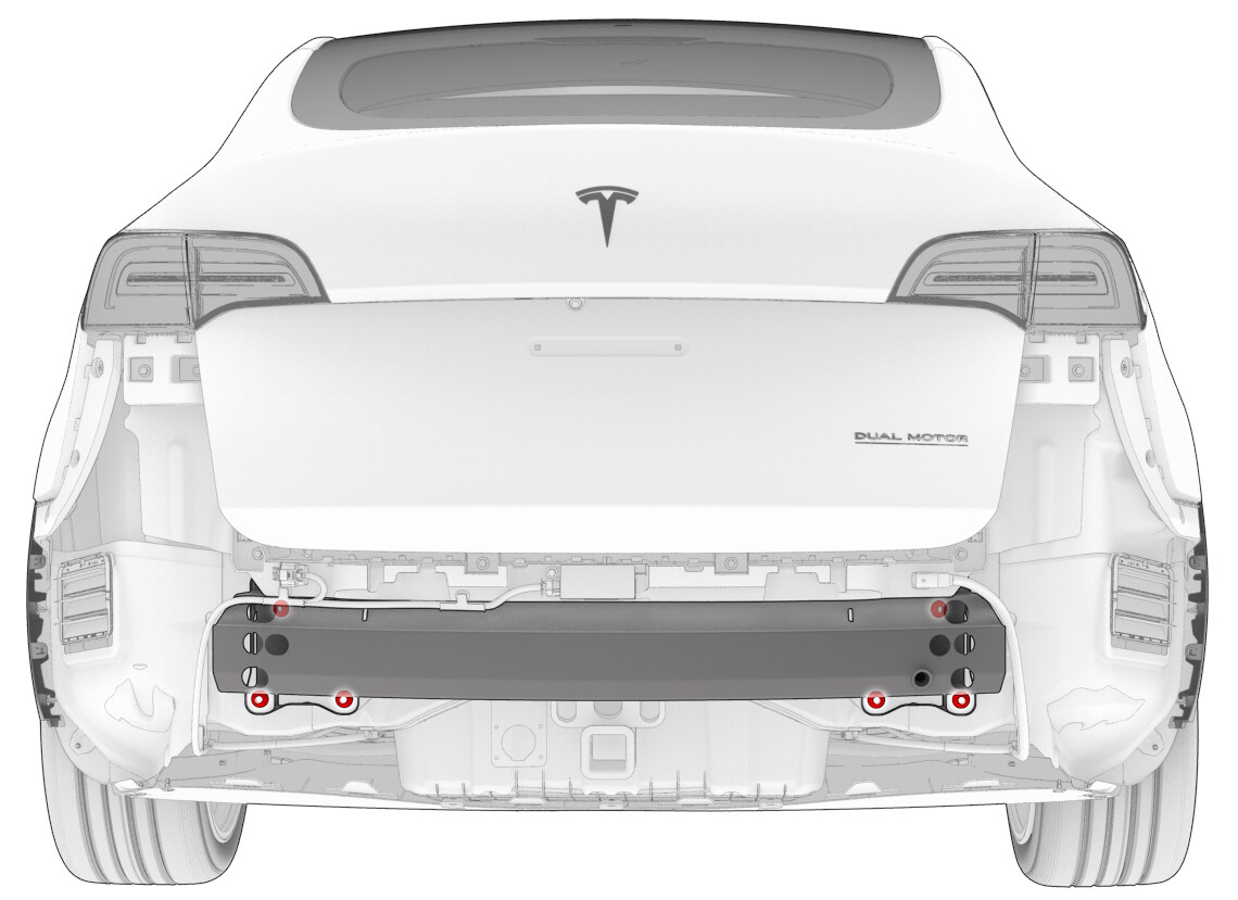拆下将后保险杠梁固定到车身的螺母,然后从车上拆下后保险杠梁。