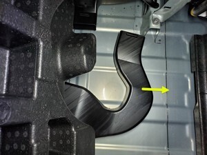 - 将第二排 RH 底板导管放置到车内,朝车辆后部推导管,然后将 RH 导管固定到主导管上。