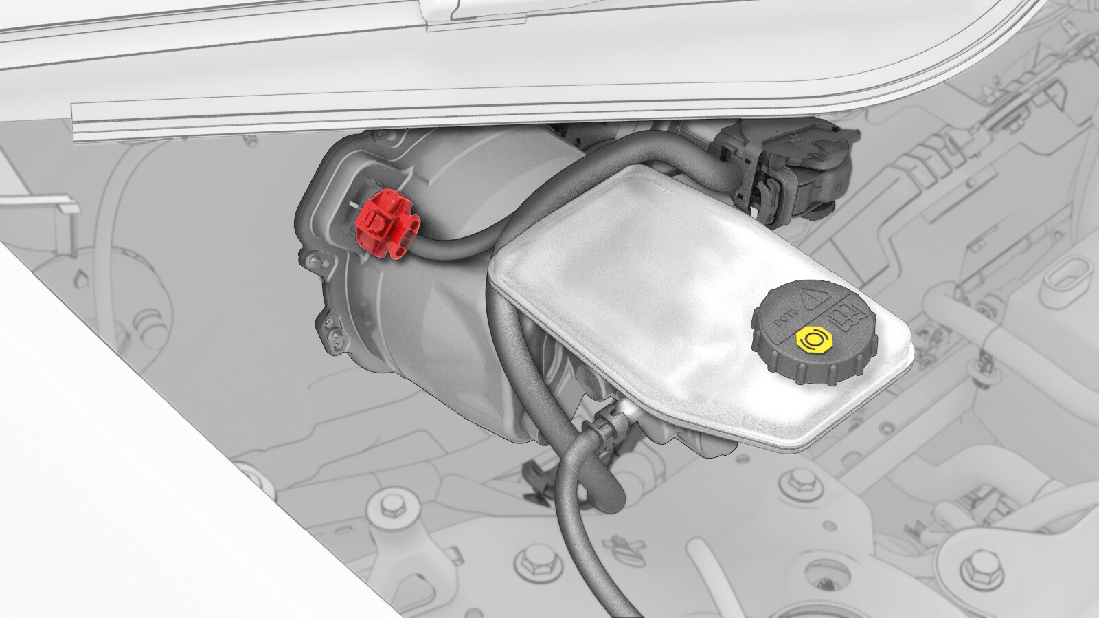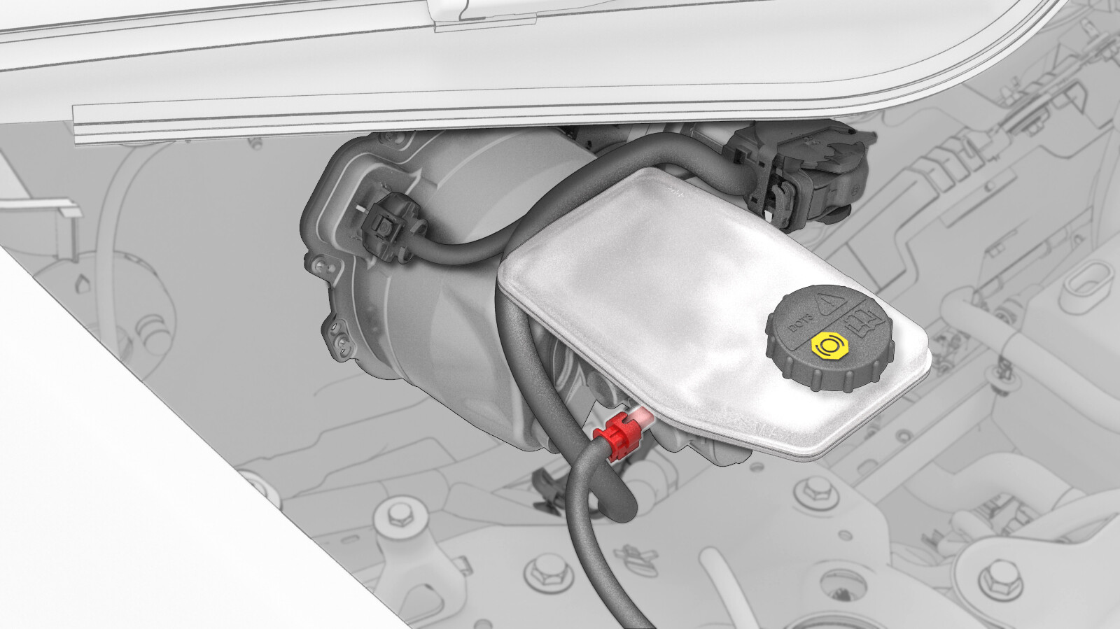 松开锁片,然后断开制动液储液罐电气连接器。