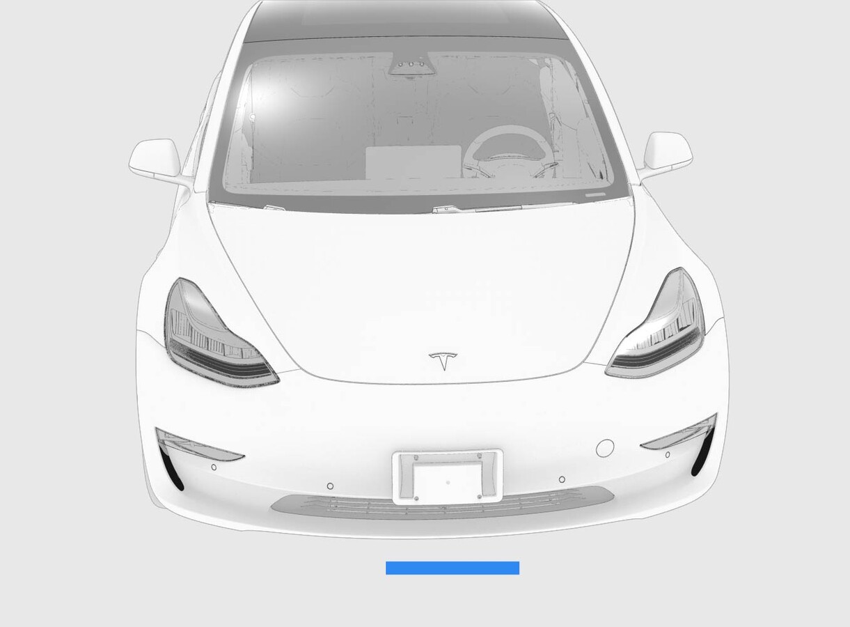 提示: 将激光束对准前饰板盖板的平整部分,位于 Tesla“T”徽标的底端正下方。
