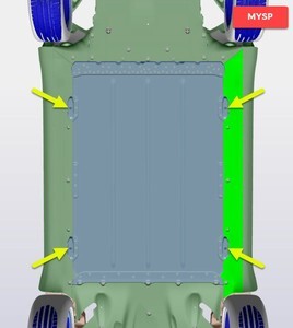 注Ensure vehicle is not charging, Note the MYSP lifting points are more narrow than the MY