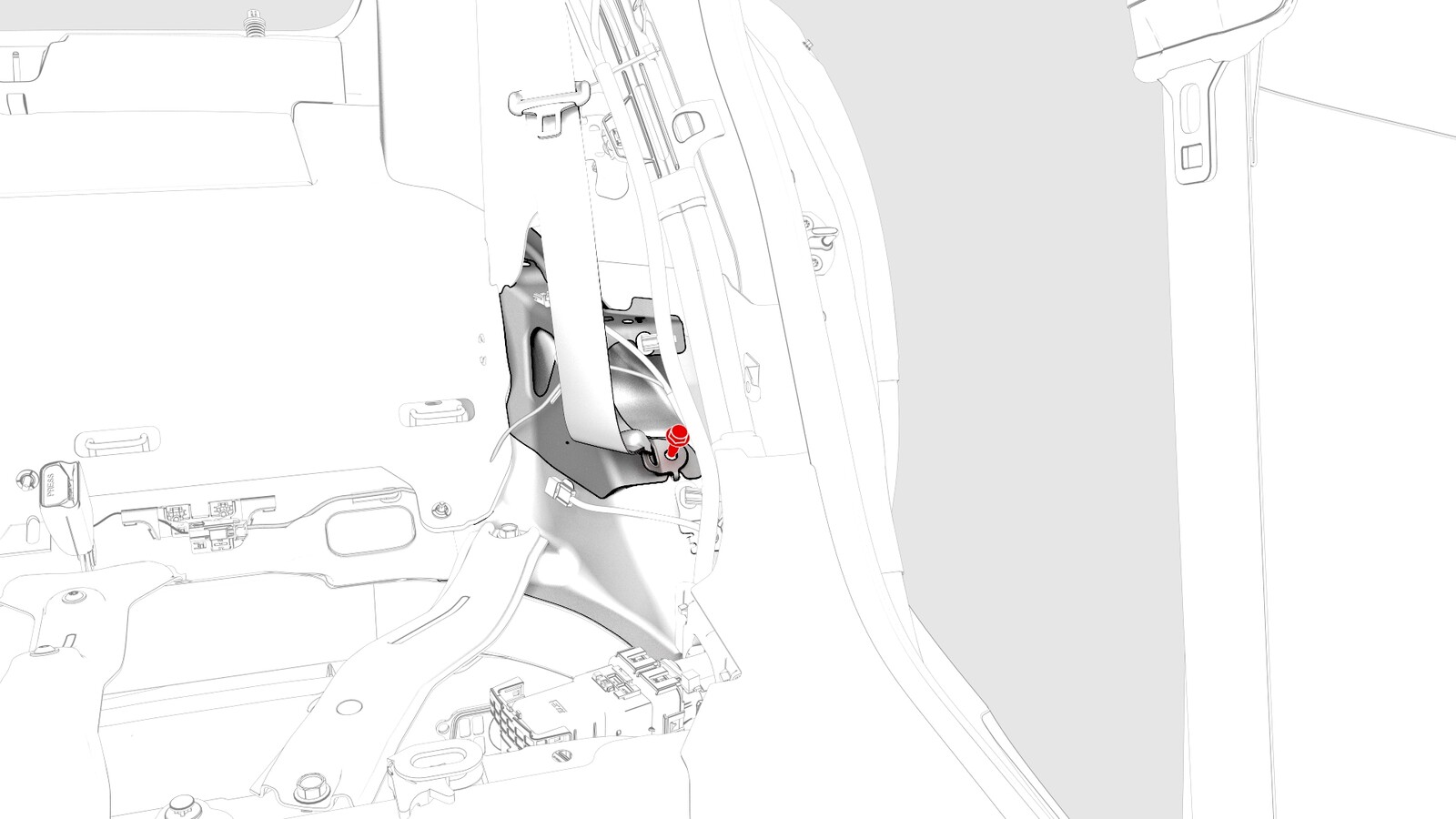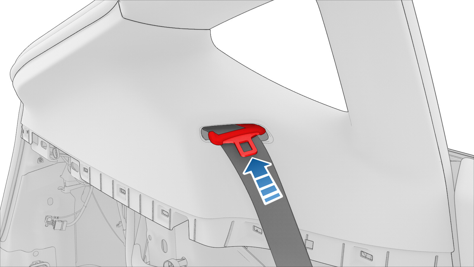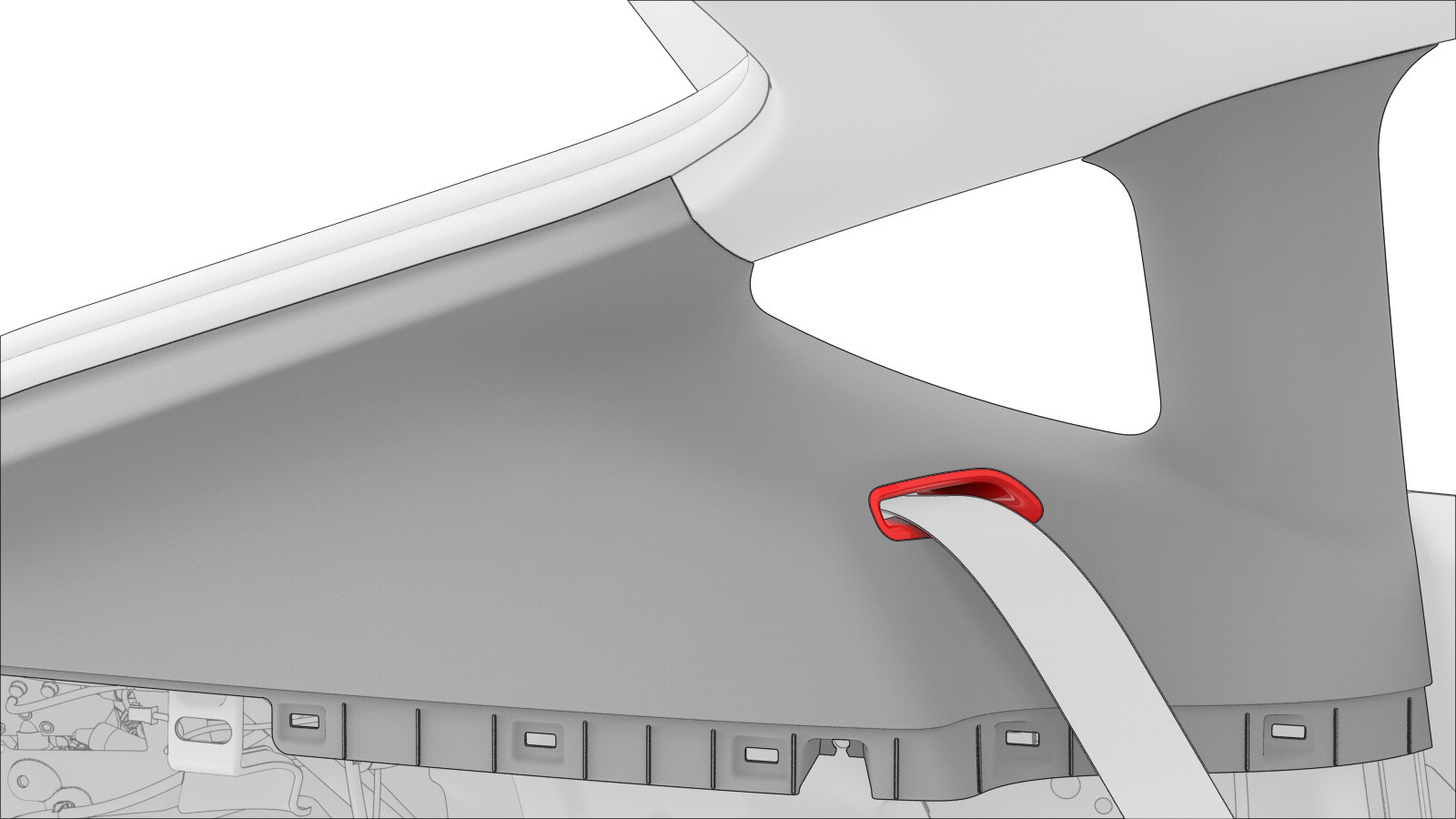 - Feed the seat belt through the LH upper C-pillar trim, and then remove the trim.