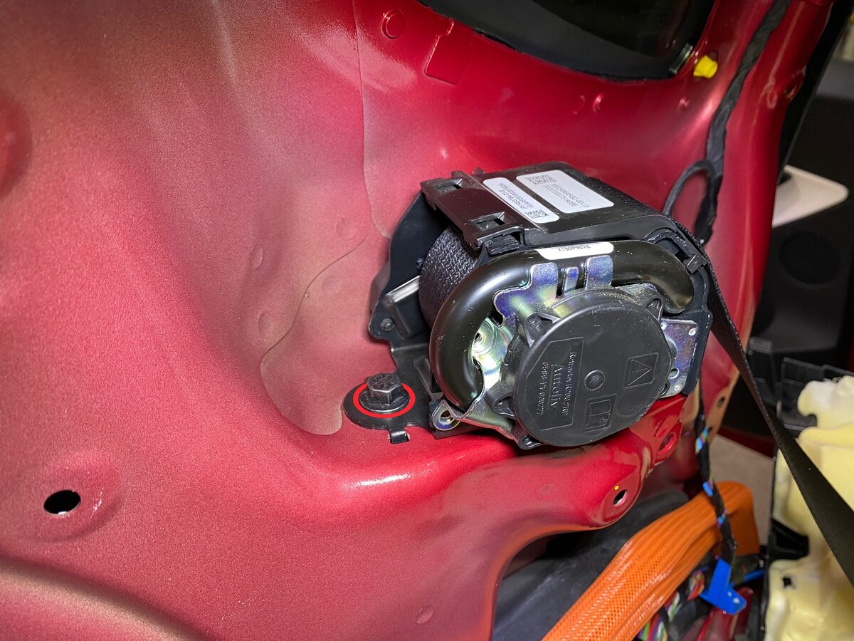 attaches the LH 2nd row seatbelt to the body, and then remove the seatbelt from the