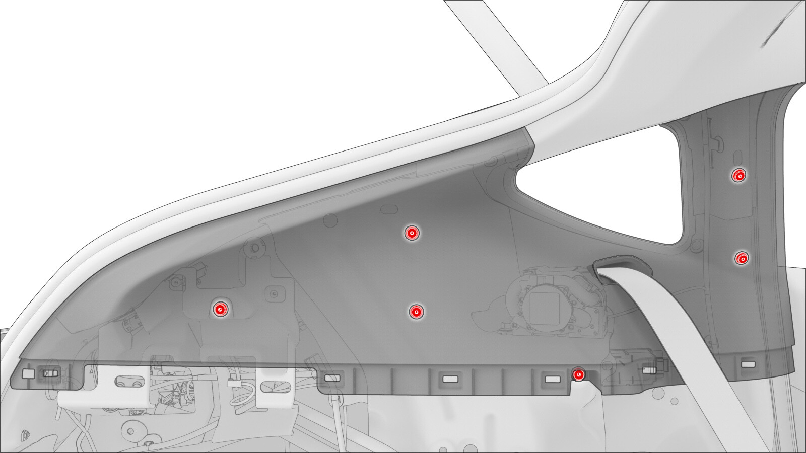 Release the clips (x6) that attach the upper C-pillar trim, and then set the trim