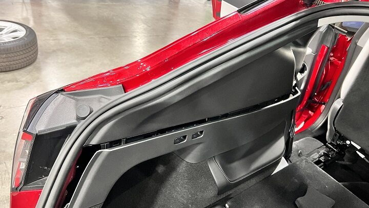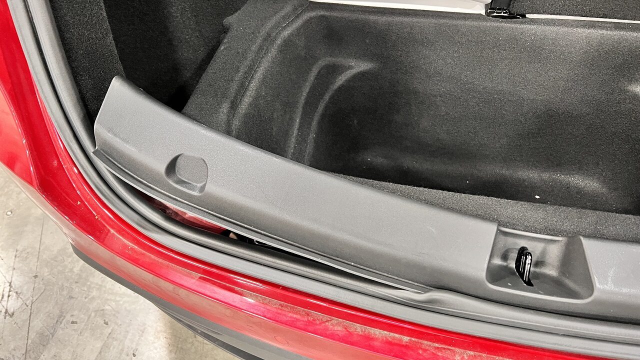 - Release the clips (x4) that attach the LH side of the trunk sill trim to the vehicle, and then partially release the LH side of the trunk sill trim.