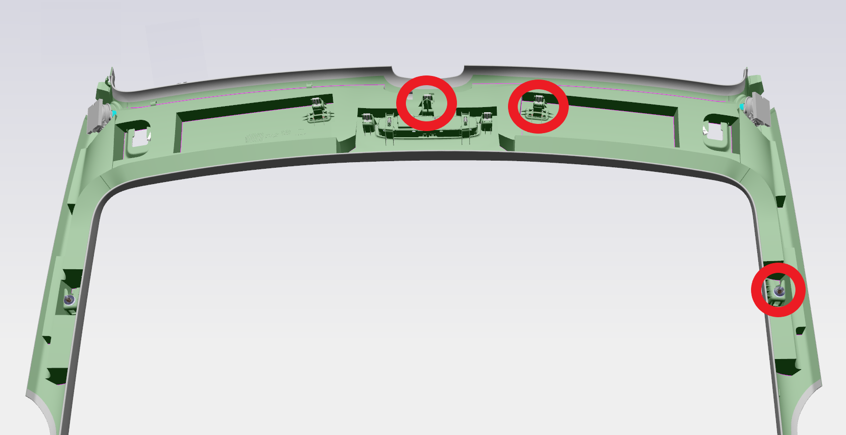 - 紧固将前部顶篷的前部固定到车身的卡子(3 个)。