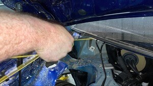 - 用钻头转动切割工具上的轴,开始拆下挡风玻璃。