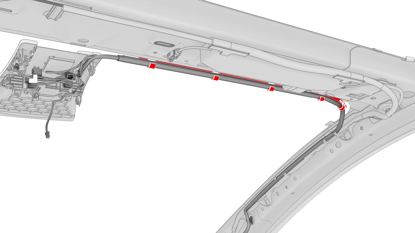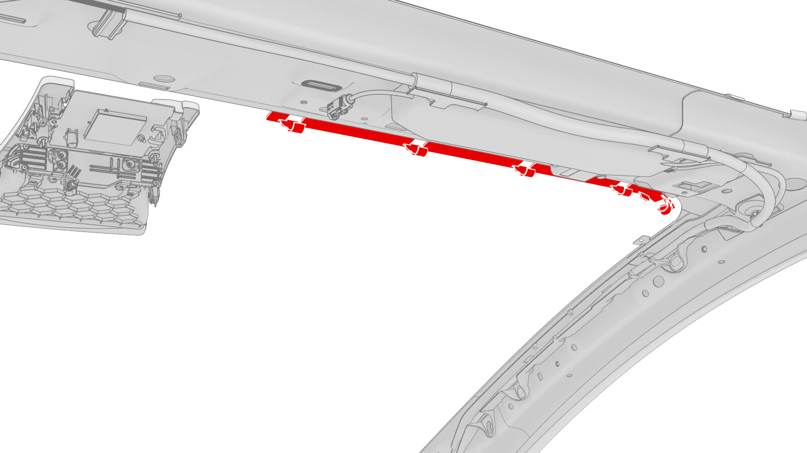- 将挡风玻璃线束从挡风玻璃紧固件轨道支架上松开。