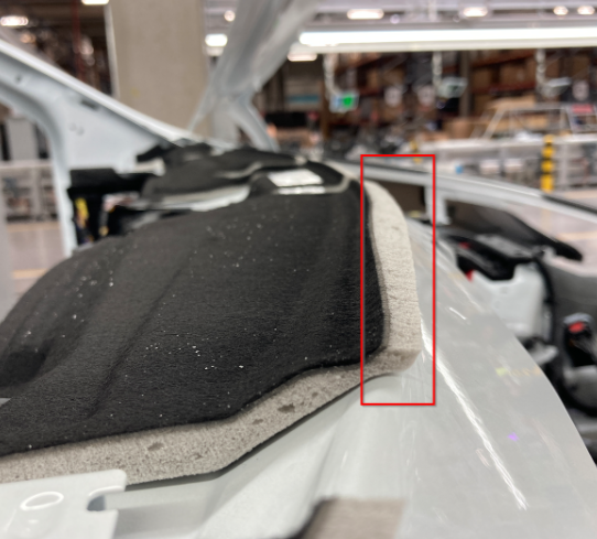 注前围板垫与车身不齐平,可能会导致噪音问题。