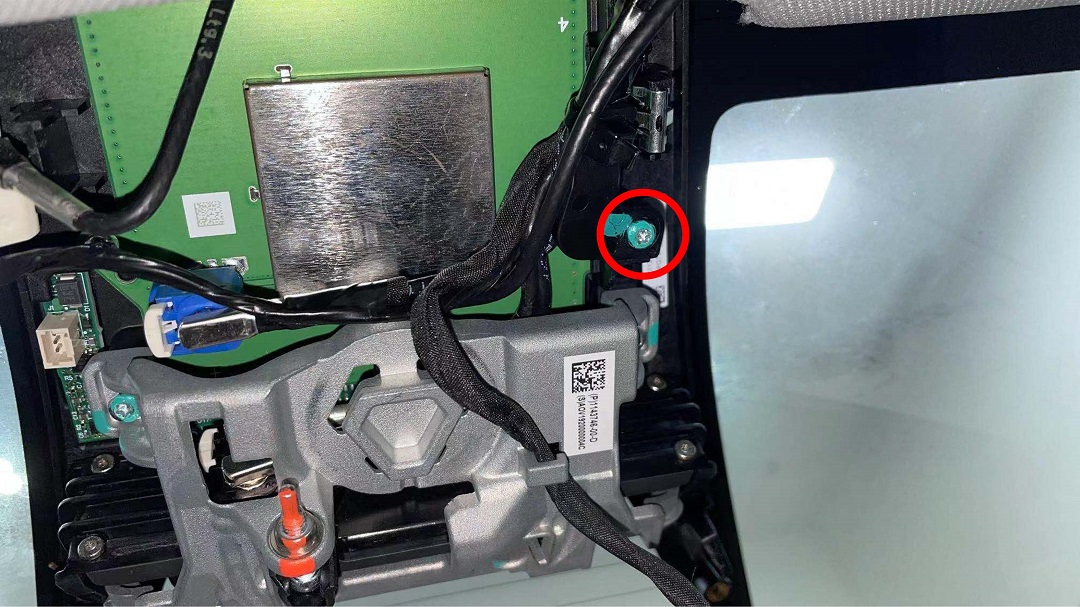 拆下将挡风玻璃线束固定到挡风玻璃支架的螺钉,然后将线束置于一旁。