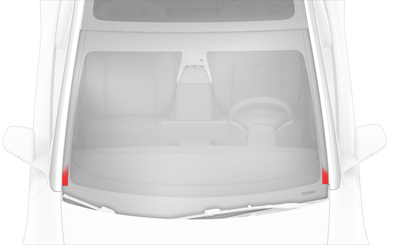 注固定销位于挡风玻璃的各上角处。注固定销可能并不清晰可见。使用刀片探索其位置。