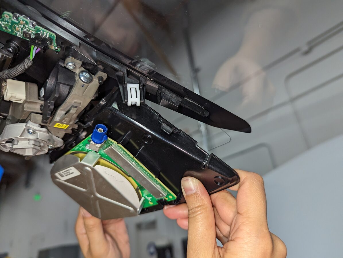 将前置摄像头总成从挡风玻璃支架上拆下。
