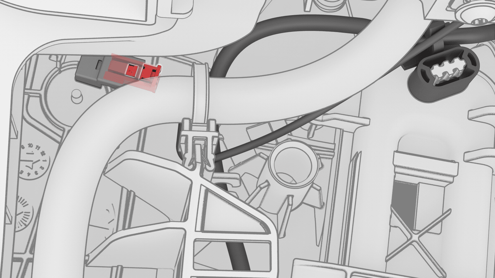 - 连接 RH 下部导管热敏电阻电气连接器。