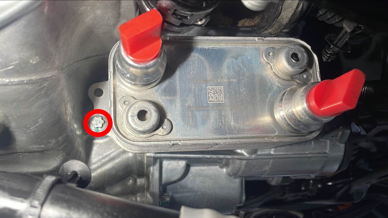 the bolts (x2) that attach the heat exchanger to the drive unit.