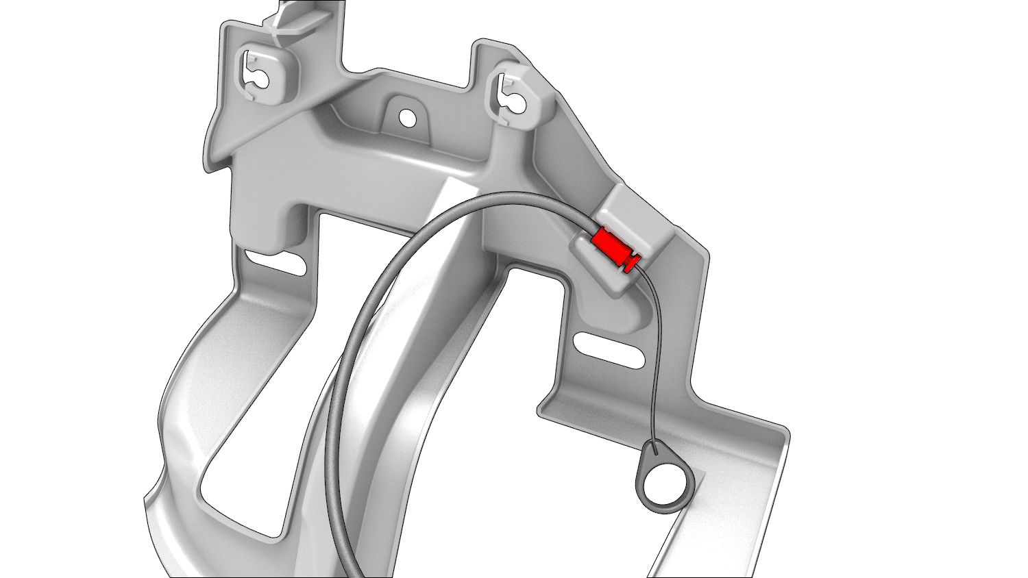 注支架仍固定在充电端口的手动开锁缆索上。