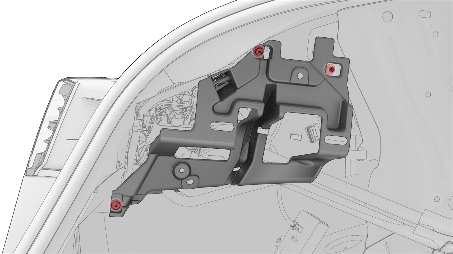 松开将 LH C 柱支架固定到车辆的夹子 (x3),然后从车上小心地拔下支架。