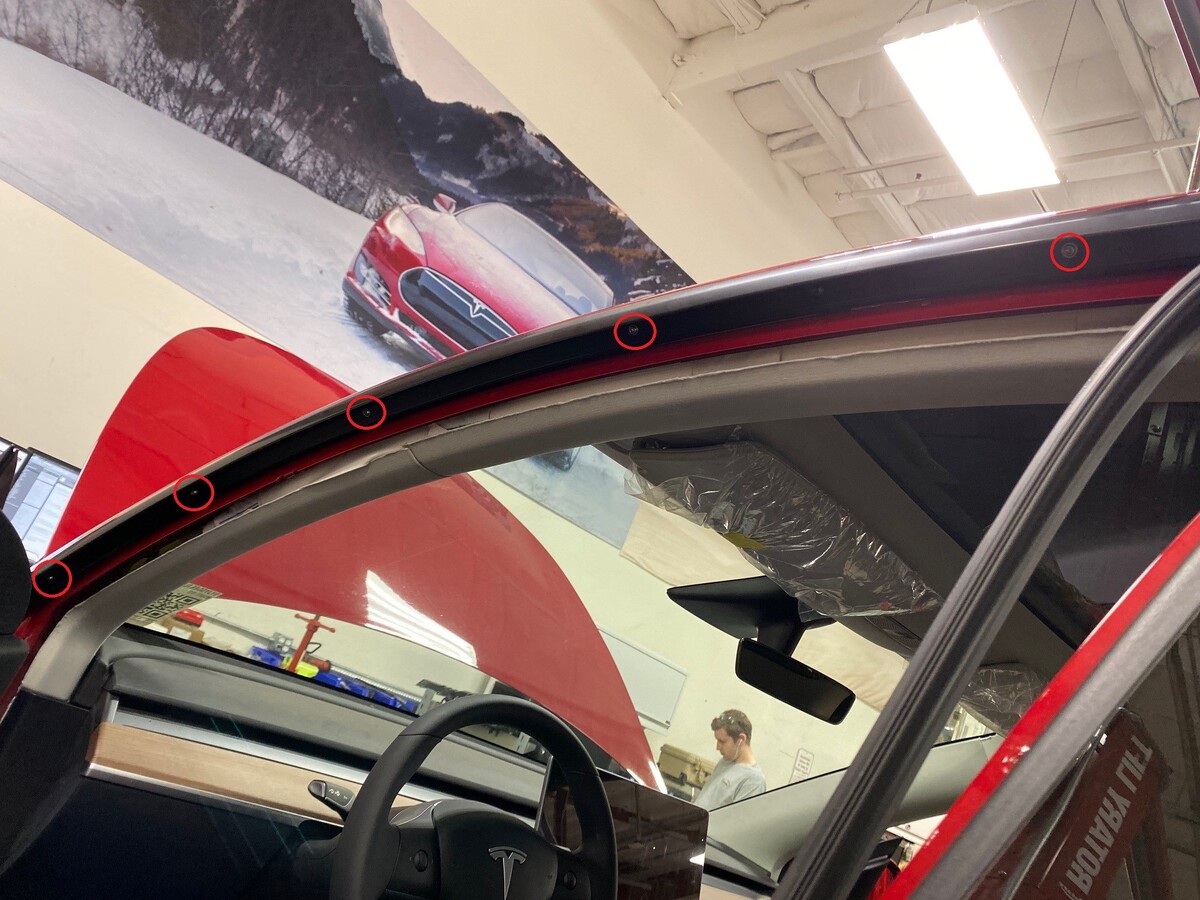 注从密封条的后角逐步向前作业,确保密封条完全固定到亮条内。如果安装正确,将看不到密封条的边缘。