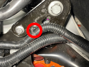 - Release the clips (x2) that attach the rear drive unit outlet hose to the rear skid plate.