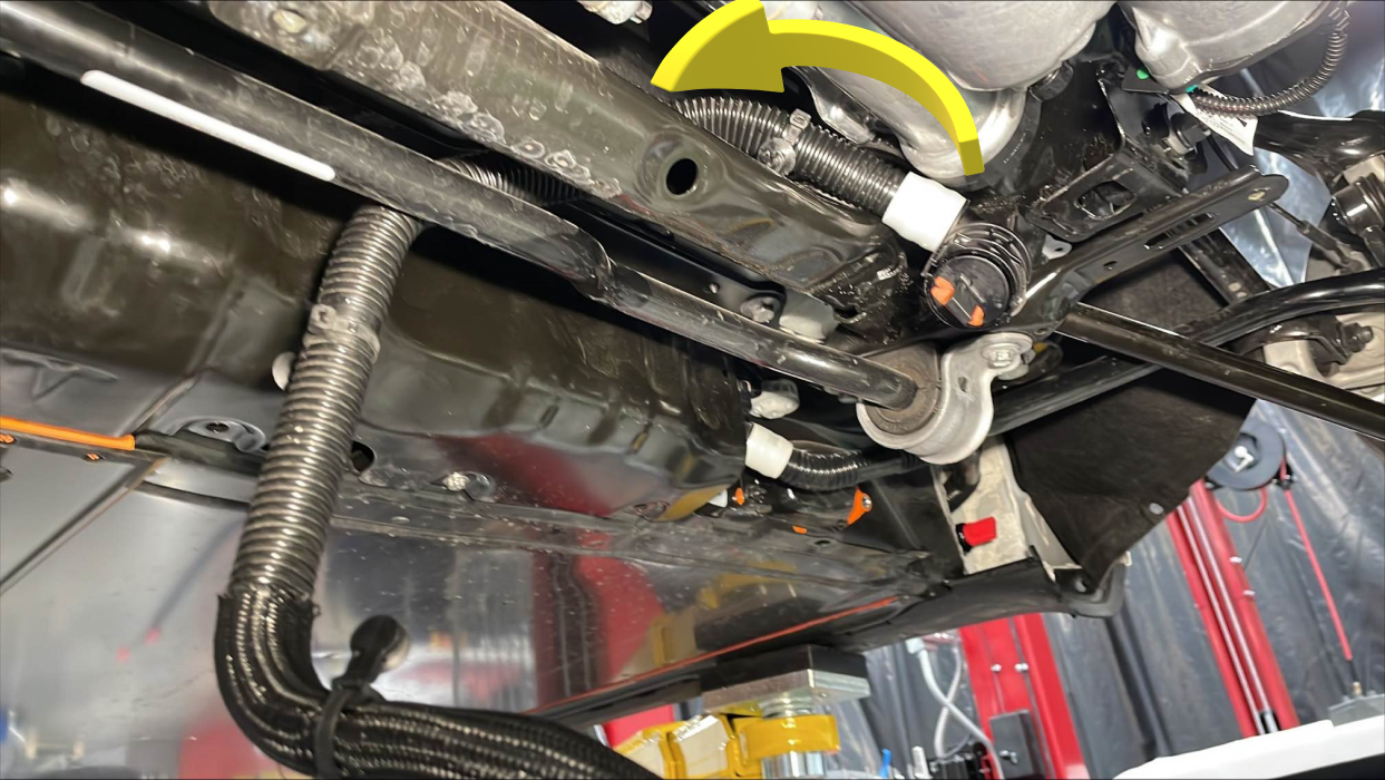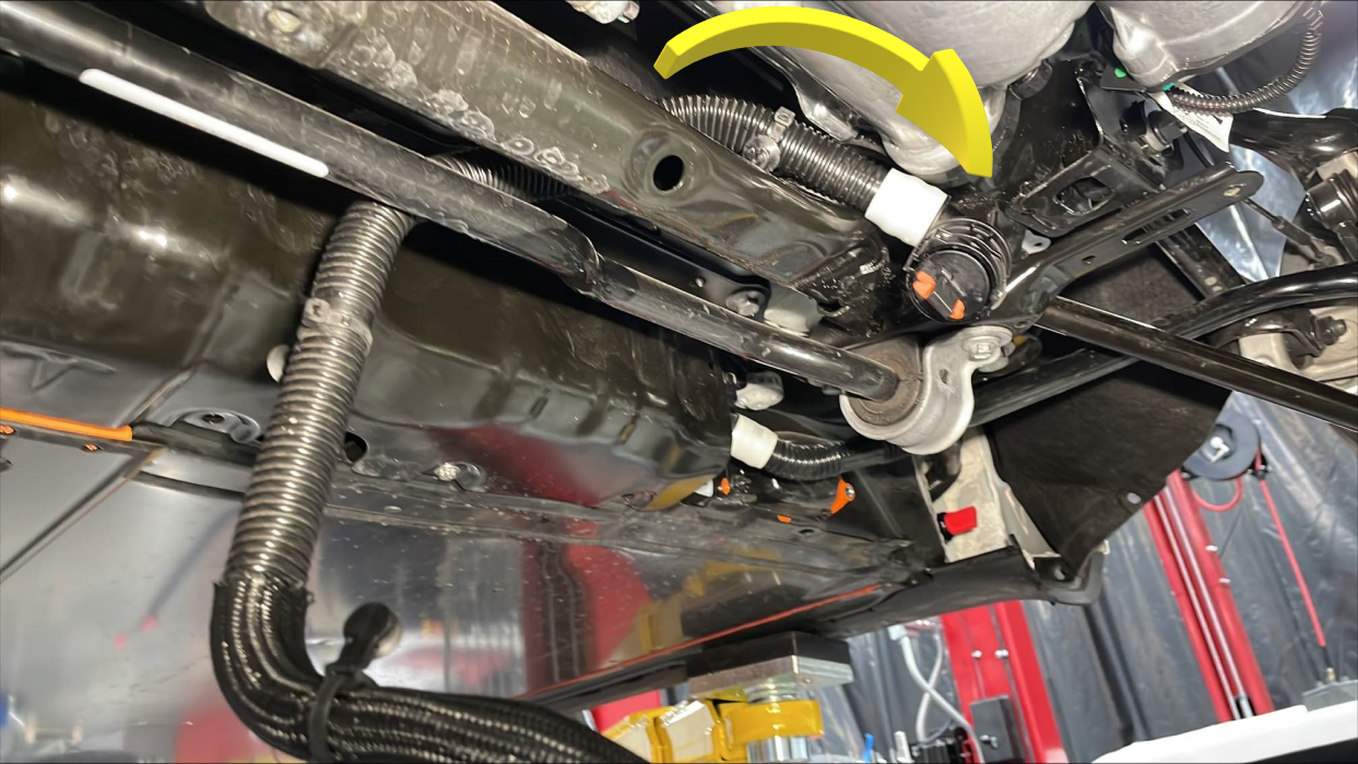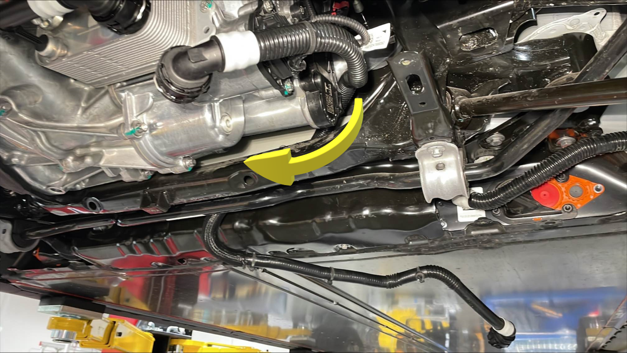 - Maneuver the rear drive unit outlet hose up and in between the rear subframe and the HV battery, and then move the hose in and around the rear drive unit.